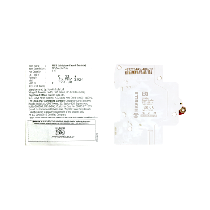 Choose the Havells X7 32 Amp MCB DP for its seamless combination of functionality and durability. Whether upgrading your electrical systems or ensuring compliance with safety standards, this is your go-to product for efficient circuit protection that stands the test of time.